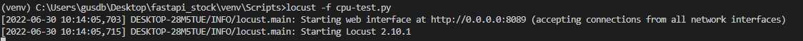 위의 코드를cpu-test.py로 작성을 하고 나서 locust로 실행시켜 주자