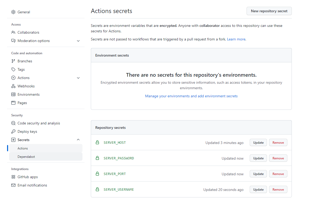 SSH 비밀번호 아이디 접속을 통해 배포 하는 방법에 대해 다루겠습니다 ✅ 공식문서 🔎 😇 항상 공식 문서가 중요한 법 입니다.!! 👉 공식 홈페이지, 공식 문서 GitHub Actions Documentation - GitHub Docs Automate, customize, and execute your software development workflows right in your repository with GitHub Actions. You can discover, create, and share actions to perform any job you'd like, including CI/CD, and combine actions in a completely customized wo docs.gi..